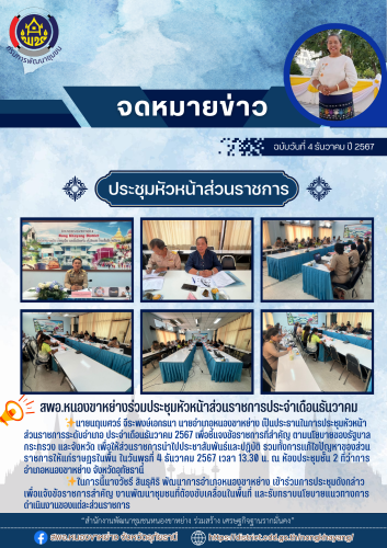 ✨พช.อำเภอหนองขาหย่าง :ร่วมประชุมหัวหน้าส่วนราชการระดับอำเภอ ประจำเดือนธันวาคม 2567